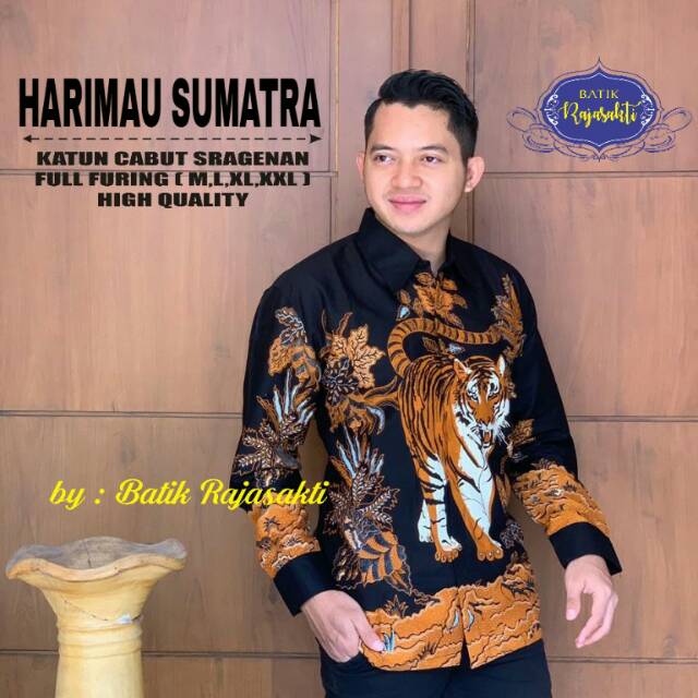 Name: Kemeja Batik Pria Harimau Sumatera Batik Original Rajasakti Katun Cabut Sragenan