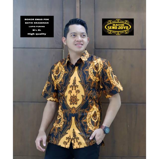 Name: Batik Solo Bokor Emas Pendek Kemeja Pria Katun Halus Sragenan Full Furing